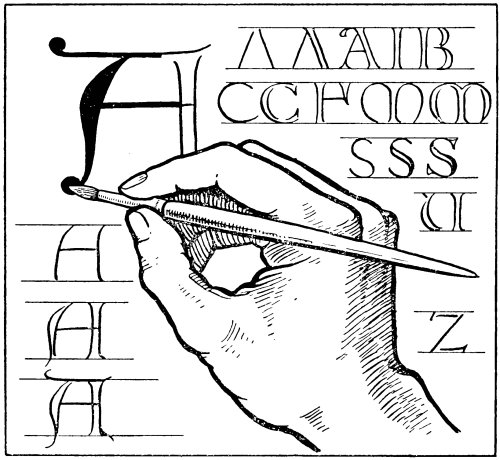 “Perfect illumination,” says Ruskin, in one of his Lectures on Art, “is only writing made lovely;... But to make writing itself beautiful—to make the sweep of the pen lovely—is the true art of illumination.” Certainly it is only when the student is able to produce writing that is attractive in itself, that it is permissible to add decoration to it. The decoration should be the natural outgrowth from the writing.