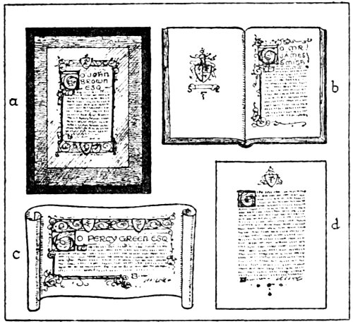 There are many ways in which the art of illumination might be applied to-day, as well as in the usual illuminated testimonial. Several suggestions are given in the following pages for different ways in which it may be employed.