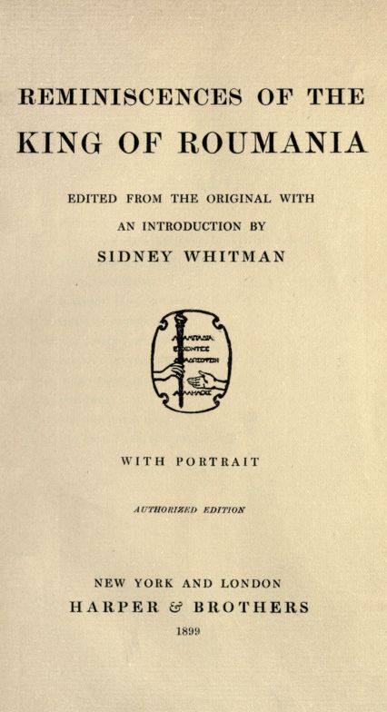 It is said to have been a chance occasion which gave the first impetus towards the compilation of the German original[1] from which these "Reminiscences of the King of Roumania have been re-edited and abridged." One day an enterprising man of letters applied to one who had followed the King's career for years with vivid interest: "The public of a country extending from the Alps to the ocean is eager to know something about Roumania and her Hohenzollern ruler." The King, without whose consent little or nothing could have been done, thought the matter over carefully; in fact, he weighed it in his mind for several years before coming to a final decision.[viii] At first his natural antipathy to being talked about—even in praise (to criticism he had ever been indifferent)—made him reluctant to provide printed matter for public comment. On the other hand, he had long been most anxious that Roumania should attract more public attention than the world had hitherto bestowed on her. In an age of universal trade competition and self-advertisement, for a country to be talked about possibly meant attracting capitalists and opening up markets: things which might add materially to her prosperity. With such possibilities in view, the King's own personal taste or scruples were of secondary moment to him. So the idea first suggested by a stranger gradually took shape in his mind, and with it the desire to see placed before his own subjects a truthful record of what had been achieved in Roumania in his own time. By these means he hoped to give his people an instructive synopsis of the difficulties which had been successfully overcome in the task of creating practical institutions out of chaos.