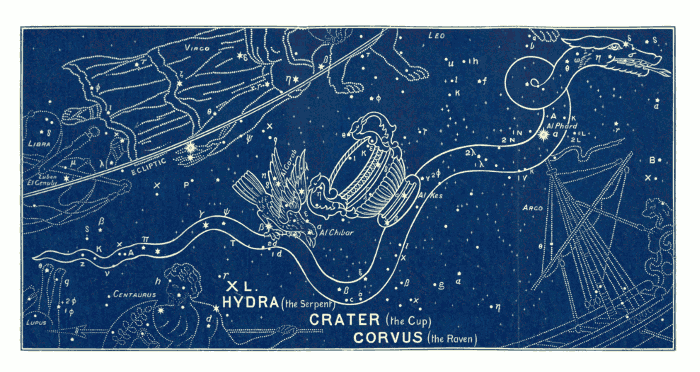 Beginning, then, with Virgo, let us now spread out the contents of this Heavenly Volume, so that the eye can take them in at a glance. Of course we are greatly hindered in this, in having to use the modern Latin names which the Constellations bear to-day.19 Some of these names are mistakes, others are gross perversions of the truth, as proved by the pictures themselves, which are far more ancient, and have come down to us from primitive times.