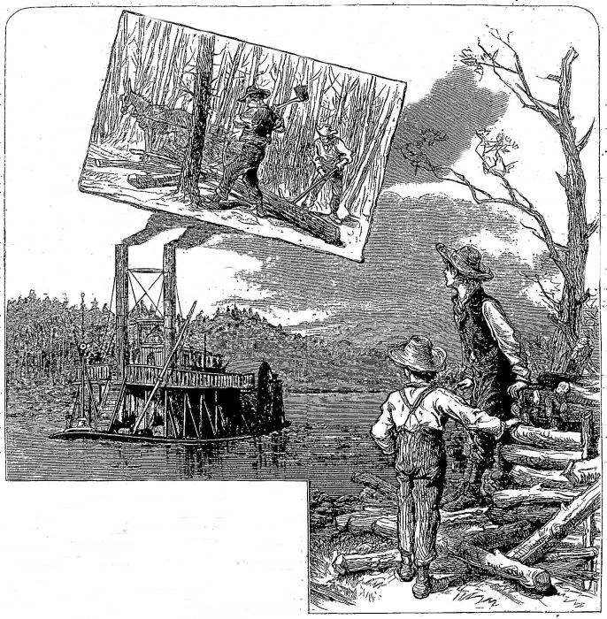 "Never mind," said Bob. "It is only September now, and we'll get a few acres cleared by spring. Our first work must be to cut a big pile of wood to sell to the steamboats when they come up; if we don't, we can't buy ploughs or food for our farming operations."