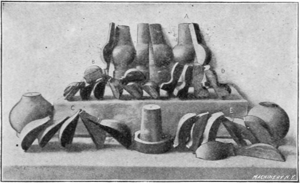 Fig. 22. Various Steps in Spinning the Two Brass Shells at the Right