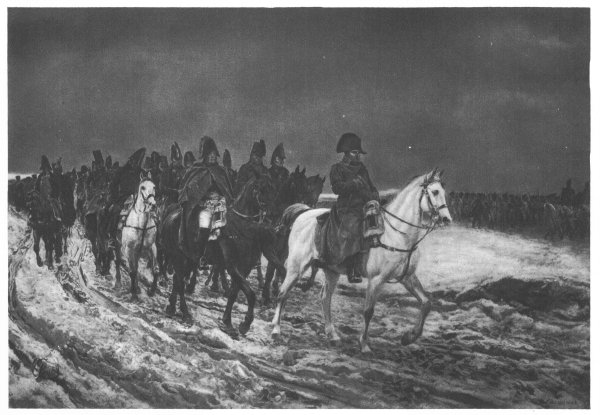It was with his ally, Russia, that the first break came. That Napoleon was startled by the idea of war with Alexander and sought to prevent it, is certain; but Alexander refused to yield to his demand that the embargo against English goods be enforced. The embargo he had set down as the “fundamental law of the Empire.” There was nothing to do but settle it by arms, and in the summer of 1812, with an army of over half a million men, he began a reluctant and hesitating march against Russia. It was a campaign of terrible disasters. The Russians retreated before him, letting cold and hunger do the work of battles. So effectively did they work that the French army was practically destroyed. The Russian campaign is one of the most appalling in history. It was but the beginning of his overthrow. Alexander raised the cry “Deliver Europe!” Stein and other liberal minds rallied the youth of the11 German states into a league, pledged to fight for national freedom. His allies and dependences began to demand the return of lost territories as a price of loyalty. France revolted at the prospects of continued bloodshed. The campaigns thrust upon him by all these forces were fought; but frequently without his old genius.