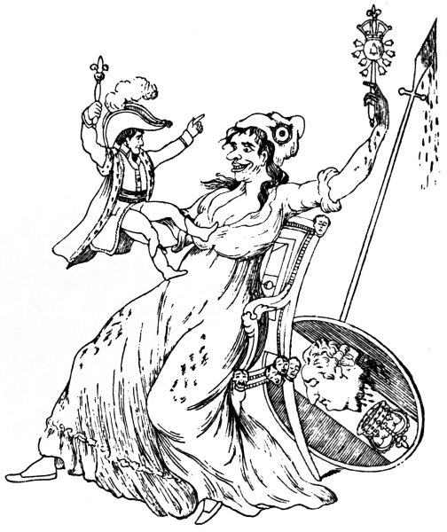 A Captain Wright figures in this plot; and, as he was an Englishman, and his name is frequent both in the caricature and satire of the day, some notice of him must be given. He was a lieutenant in the Royal Navy, and somehow got mixed up with this conspiracy. He took Georges Cadoudal and others on board either at Deal or Hastings, and crossed over to Beville, where there was a smuggler’s rope let down from an otherwise inaccessible cliff. By means of this they were drawn up, and went secretly to Paris. The plot failed, and they were thrown into prison, Wright being afterwards captured at sea. Cadoudal went to the scaffold, Pichegru was found strangled in his cell; and Wright, the English said, after being tortured in prison, to compel him to give evidence against his companions, was assassinated by order of Napoleon.