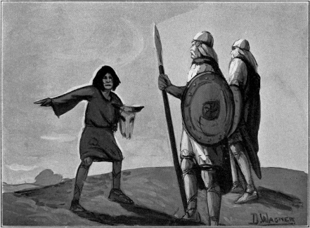 From that time on he had more wisdom than the wisest man in Ireland. Not only that, but when in times of stress he desired to know the outcome of a battle or an adventure, by biting the thumb which had been burned he could tell the result. In other stories you will see how this knowledge aided him. Of course, you will wonder why he ever made mistakes with such a gift. I am unable to tell you that. Many of the adventures we read of a wise man would never have attempted. Probably he only used this thumb in times of great importance for fear that if he used it for everything the great gift would leave him.