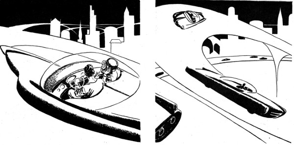 The buyer grunted peevishly, dropped Whambozambo Comix on the floor and led the way out of the building and down the log corduroy road to the highway. His car was waiting on the concrete. It was, like all contemporary cars, too low-slung to get over the logs. He climbed down into the car and started the motor with a tremendous sparkle and roar.