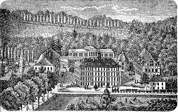 Die Hotels der grösseren Gebirgsstädte unterscheiden sich nicht von denen des Niederlandes. Die ehemals sehr kleinen Betten verschwinden[15] mehr und mehr. In Böhmen sind diese meist luxuriöser, wie auf sächsischer Seite, selbst in oft unansehnlichen Gasthäusern. Sehr zu wünschen ist, dass die Wirthe im Sommer statt für Federbetten für überzogene Wattdecken Sorge tragen.
