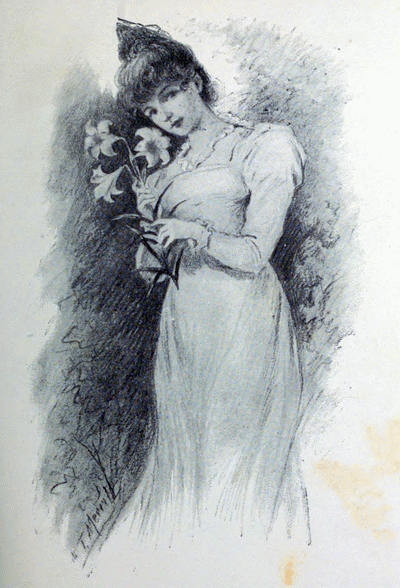 The long white lily—putting it delicately to her cheek 20