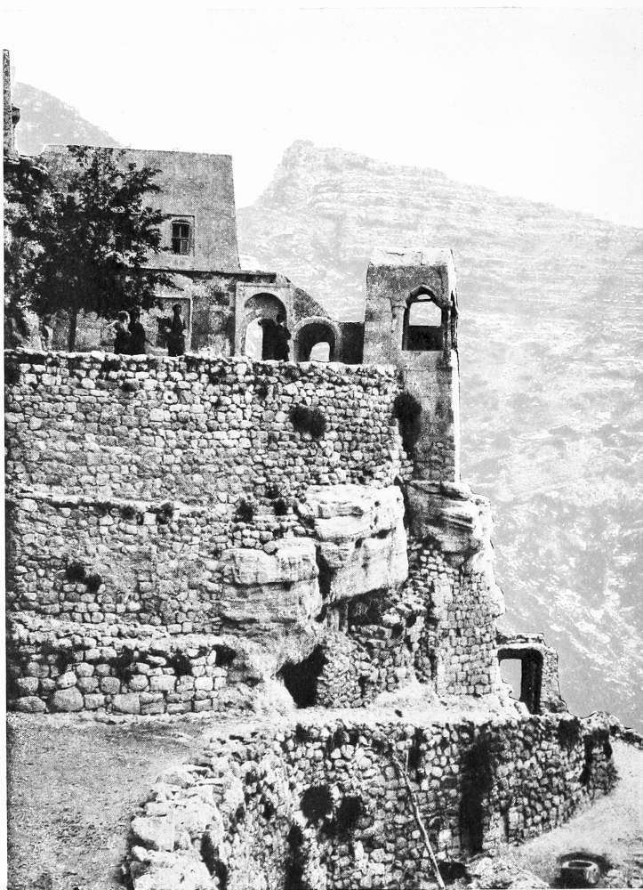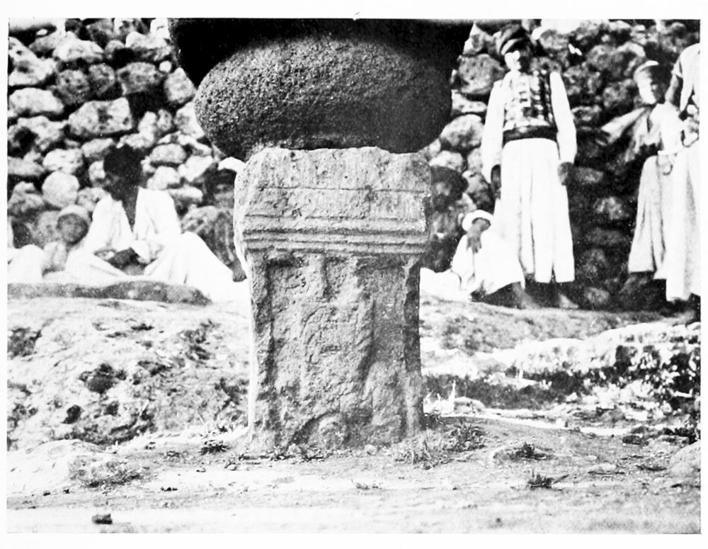 The plain man of Aleppo did not trouble his head with fiscal problems; he judged the new government by immediate results and found it wanting. I rode one sunny afternoon with the boy, Fattûḥ’s brother-in-law, who was to accompany us on our journey, to the spring of ’Ain Tell, a mile or two north of the town. Jûsef—his name, as Fattûḥ was careful to point out, is French: “I thought your Excellency knew French,” he said severely, in answer to my tactless inquiry—Jûsef conducted me across wet meadows, where in spring the citizens of Aleppo take the air, and past a small mound, no doubt artificial, a relic perhaps of the constructions of Seif ed Dauleh, whose palace once occupied these fields. Close to the spring stands a mill with a pair of stone lions carved on the slab above the door, the heraldic supporters of some prince of Aleppo. They had been dug out of the mound together with a fine basalt door, like those which are found among the fourth and fifth century ruins in the neighbouring hills; the miller dusted it with his sleeve and observed that it was an antîca. A party of dyers, who were engaged in spreading their striped cotton cloths upon the sward, did me the honours of their drying-ground—merry fellows they were, the typical sturdy Christians of Aleppo, who hold their own with their Moslem brothers and reckon little of distinctions of creed.