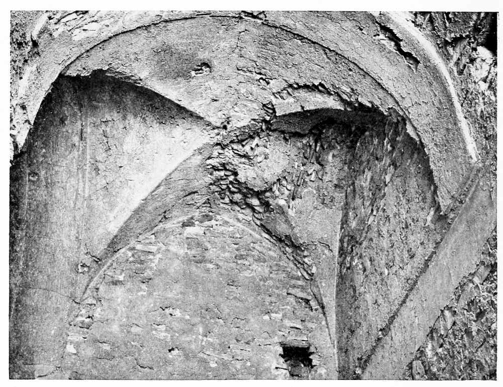 owes its present form to El Malik eẓ Ẓâhir.[3] The mosque of Eṣ Ṣâliḥîn shelters a gigantic footprint of Abraham, and about it lie the tombs of the pious who sought a resting-place near the site sanctified by the patriarch—tombstones worthy of a museum, carved with Cufic inscriptions and with vine scrolls and bunches of grapes. And falling now into unheeded decay are other memorials of the dead, their walls covered with delicate tracery and their windows filled with an exquisite lacework of stone (Fig. 7). They were great builders these princes of Islâm, Ayyûbid and Mamlûk, and in nothing greater than in their mastery of structural difficulties. The problem of the dome, its thrust and its setting over a square substructure, received from them every possible solution; they bent the solid stone into airy forms of infinite variety (Fig. 8 and Fig. 9). Their splendid masonry satisfied the eye as does the wall of a Greek temple, and none knew better than they the value of discreet decoration. The restraint and beauty of such treatment of the wall surface as is to be found in the Khân el Wazîr (Fig. 10) or the Khân es Sabûn (Fig. 11) bear witness to a master hand. The grace and ordered symmetry of these façades are as devoid of monotony as are the palace walls of the early Venetian renaissance, to which they are closely related, and here as in Venice the crowning beauty of colour is added to that of form and proportion. But it is colour of the sun’s own making; the sharp black outline of a window opening, the half tones of a carved panel lying upon the smooth brightness of the masonry soberly enhanced by the occasional use of a darker stone, either in courses or in alternate voussoirs. If you are so fortunate as to have many friends in Aleppo, you will find that the domestic architecture is no less admirable, and drinking your coffee under panelled ceilings rich with dull golds and soft deep reds, you will magnify once again the genius of the artificers of Asia.