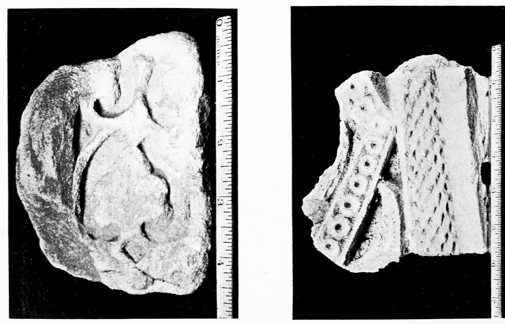 The walls and gates of the city, though they are not so well preserved as those of Diyârbekr, are fine examples of{14} mediæval fortification. To the north a prosperous quarter lies beyond the older circuit and the heraldic lions of the Mamlûks look down upon streets crowded with traffic. Armorial bearings played a large part in the decorative scheme of the Mohammadan builders. The type characteristic of Aleppo is a disk projecting slightly from the wall, carved with a cup from the base of which spring a pair of leaves. Upon the cup there are strange signs which are said to have been imitated from Egyptian hieroglyphs, a motive introduced by the Mamlûks; but I have noticed a variety of coats of the same period, such as the whorl which fills the disk upon the Bâb el Maḳâm, and the pair of upright pot-hooks, set back to back, upon the Jâmi’ el Maḳâmât in the Firdaus quarter. These disks, together with bands of inscriptions, are the sole ornaments placed upon the city gates.