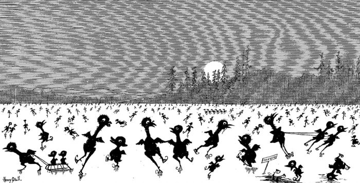 Far down the long snow-covered hills