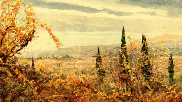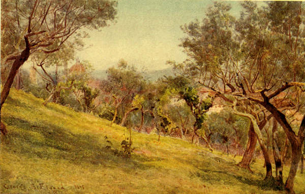 I suppose it is because we are very simple folk, and lead at home a rather primitive life, that we find everything new which most other people find familiar, and so many things attractive that the bulk of the world treat as undeserving of attention. Along that magical coast, where we turned our gaze first to the sea-fringe, then to the hill declivities, then back again to the white-laced bays, and never being able to determine which were the more beautiful, I observe that persons who have travelled many hundreds of miles in order to enjoy the sunshine and glamour of the South, are well content to make this entrancing journey in a railway carriage, pulling down the blinds if the sun be a trifle too hot, and conning their newspaper or turning over the leaves of some conventional novel, in any case. That was not our way of travelling, which was a good deal more leisurely and more old-fashioned. We should have liked to find ourselves behind Veronica’s ponies, but our hired vehicle did well enough; and, while we never asked our cheerfully communicative driver to quicken his pace, we frequently begged him to slacken it, and over and6 over again bade him halt altogether. Although, save to Lamia, the road was no new one, we all alike had fresh unsophisticated eyes for it, and all of us found it a veritable wonder-world. Indeed, I could not help reflecting that we behaved very much as we behave at home in the garden that we love, declaring that the last blue creek, or the last secular olive-grove, was the most wonderful we had yet seen, for no better reason than that it was the last.