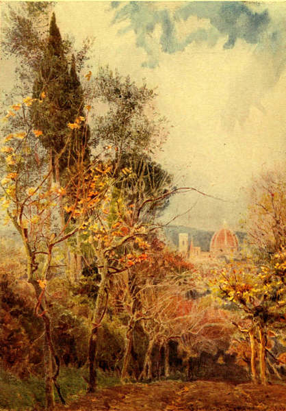 ‘I observe,’ said Lamia, ‘that another of those somewhat numerous prose performances of yours, that are more or less remotely connected with Gardens, and which you were pleased, without any previous consultation with me, to entitle Lamia’s Winter-Quarters, is, like the first of the series, The Garden That I Love, to be issued in an equally luxurious form, and to be illustrated by the attractive talent of Mr. Elgood. But since this project, to which my attention was called by that now universal source of information, advertiseviments, has been alluded to, do you mind telling me why you called our delightful sojourn in a Tuscan villa overlooking Florence my winter-quarters rather than the Poet’s winter-quarters, or Veronica’s, or, for that matter, even yours?‘