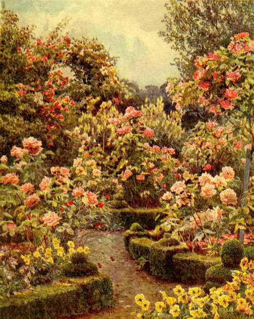 ‘Your wish is my law,’ I hastened to say, and was about to snatch at the first subject I could think of to ward off further reproof, when she held out a little posy of Penzance sweet-briar roses she had been wearing, saying in her sweetestx manner, as though afraid she might have wounded me,xi ‘Are they not lovely? No, keep them, if you care to do so. They remind me of something I saw the other day, when, on my way to London for a few hours, the train halted between Waterloo Station and Charing Cross at a point overlooking a number of back plots and alleys of the humblest description; and the one immediately below me arrested my gaze. There were two short rows of the purest white linen, lately out of the wash-tub, hanging out to dry; and under them, a hammock, with a chubby baby in it, fast asleep. A few feet behind was a red-brick wall, and along its foot three rows of pelargoniums in full flower, and evidently most carefully hoed and watered. A comely looking woman, with her sleeves tucked up as far as they would go, came out of the house, peeped into the hammock, kissed, or rather hugged the baby, and then turned it round to screen it a little from the direct rays of the sun that were shining on this little paradise. Then the train moved on; and I thought to myself, with a feeling of quiet joy, that neither the garden that we love, nor the Tuscan garden that was our winter-quarters, nor all the gardens and palaces in the world, contain more happiness than those few yards of ground in one of the humblest parts of London, tenanted by linen hung out to dry, three rows of pelargoniums, a hammock with a sleeping child in it, and a loving mother.’