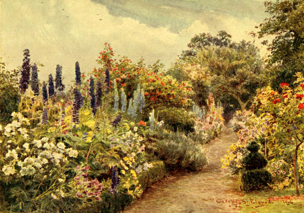 As for the garden, the garden that the too kindly sympathy of others permits one to say we all love, I can only say I wish the whole of Italy could have seen it. The Tea Roses, more numer160ous and more beautiful than ever, seemed smilingly to say, ‘Has Tuscany roses to show more fair?’ Larkspurs, of every imaginable shade of blue, from azure to cerulean; lupines, white, purple, and yellow; foxgloves, snowy-white and without a freckle; seemed to challenge each other as to which would tower highest in the summer air. The Pæony Poppies, some purposely some accidentally sown, were a garden in themselves, fair but fugitive, yet making up by their number and infinite variety for the briefness of their existence. They were everywhere in the beds and borders, and, as it seemed, where they had chosen to be; there, by the right of supreme loveliness, and the Swan-neck Poppies, the Caucasian, and the Victoria Cross, rocked more humbly beside them. No other plant of such supreme beauty has so solid a stem and such imposing foliage for so fragile a flower; and this it is, I think, which mainly constitutes its fresh charm. Every one now loves flowers, and I have no need to weary you with a catalogue of those in the Garden that I Love. But I doubt if there be any perennial plant of real beauty and value that will grow in our latitude which is not to be found there; and I can say with truth, of every bed and border, that you could not see the ground161 for flowers. As for the winding turf walk, which perhaps you remember as the South Enclosure, it is not I who will say what it looked like when we returned. For one who has justly acquired honour, not only by the beauty of her own home, but by her charming pages concerning all that appertains to a garden, and who had visited it the day before our arrival, left a little line for Veronica, in which she generously said it was the loveliest she had ever seen. I should hesitate to repeat so flattering an opinion, were it not for some injustice to myself that followed. ‘As for the winding turf walk and its glow of bloom and colour on either side,’ said the kindly writer, ‘nowhere, I am sure, is there anything like it; and only the Poet could have conceived it.’ As if it was the Poet who had conceived it! It was I who,—but so it is in this unfair world, where everybody bows down before prestige. Lamia herself could not have been more partial or more unjust.