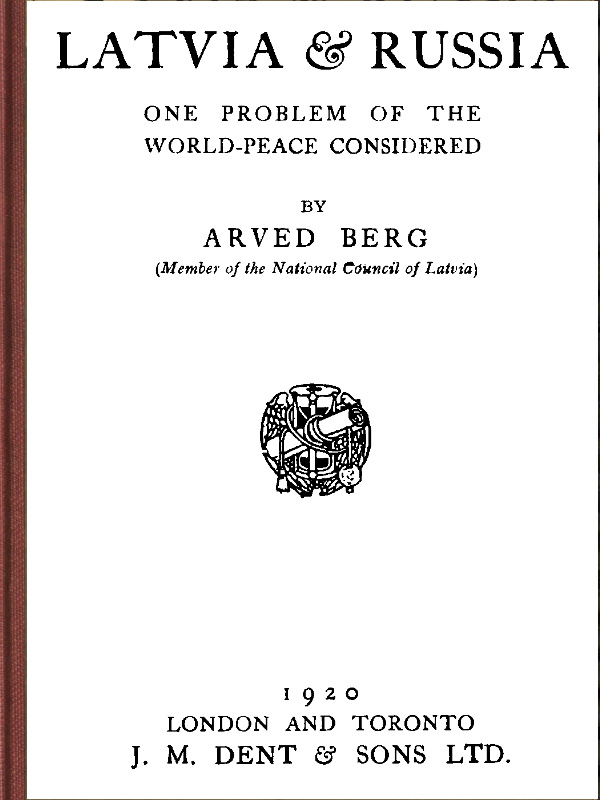 Project Gutenberg's Latvia & Russia, by Arveds Karlis Kristaps Bergs This eBook is for the use of anyone anywhere in the United States and most other parts of the world at no cost and with almost no restrictions whatsoever. You may copy it, give it away or re-use it under the terms of the Project Gutenberg License included with this eBook or online at www.gutenberg.org. If you are not located in the United States, you'll have to check the laws of the country where you are located before using this ebook. Title: Latvia & Russia One problem of the world-peace considered Author: Arveds Karlis Kristaps Bergs Release Date: February 18, 2017 [EBook #54189] Language: English Character set encoding: UTF-8 *** START OF THIS PROJECT GUTENBERG EBOOK LATVIA & RUSSIA *** Produced by Anita Hammond, Wayne Hammond and the Online Distributed Proofreading Team at http://www.pgdp.net (This file was produced from images generously made available by The Internet Archive/American Libraries.)