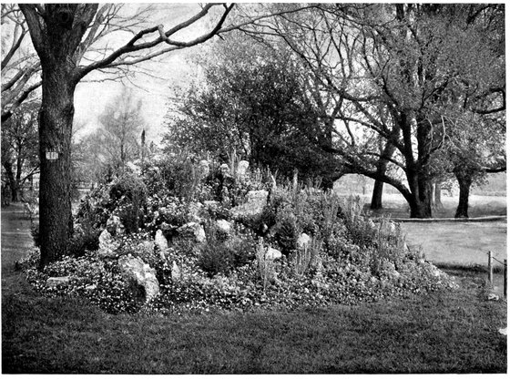 On a small city lawn not more than one such bed should be allowed. On a large lawn three will give a better effect than a great number, especially if care is taken to have them all visible from different points on the lawn and from the house, never isolating them by so placing that clumps of trees or shrubbery intervene, but using these rather as a background for the beds.