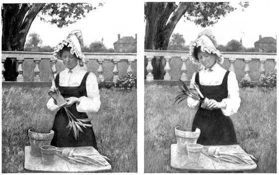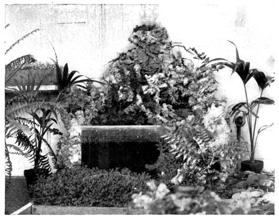 The location of the beds and their consequent 10moisture and sunshine must determine the flowers to occupy them. If you are fortunate enough to have a corner low, damp and shaded in the afternoon, that is the place to set out the beautiful Japanese Iris, Cypripedium acaule and other moisture-loving plants, while the Gladiolus may be given a prominent place in full sunshine. Asters and other flowers that do not bloom until fall should have a less conspicuous place; they are so showy that they will not fail to attract attention, wherever they may be planted. Pansies and other low-growing plants should be set out in the bed next the lawn. The general effect is finer when only one kind of flower is grown in a bed, but when two or more varieties of flowers, harmonising in colour, are grown together, the tallest must be placed in the centre and the others grouped according to height. Various plants may be used as edgings, due consideration being given to the plants which are to fill the beds.