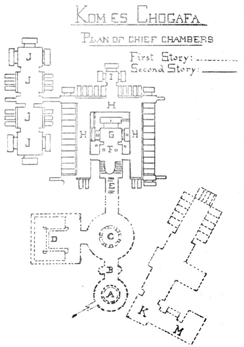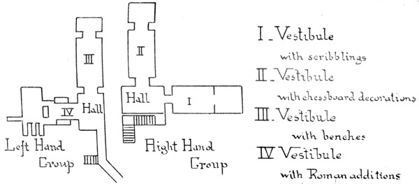 Northern Cemetery.—This, the most important in the city, is some way from the groups above described. Indeed the visitor from Bahig leaves it to his left on his way to the hut. There is a good view of it from a mound. The main object is a church (150 ft. long), with three aisles, a square apse and numerous mortuary chapels where the more prominent invalids were buried. Others lie outside. Late date—7th-9th cent.
