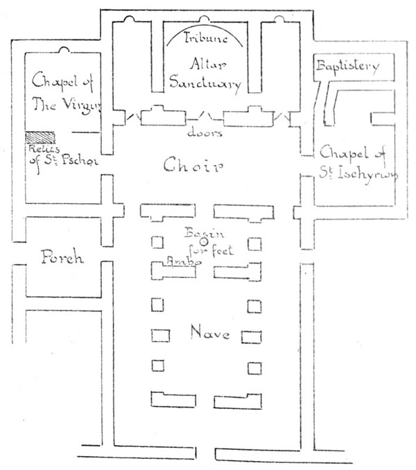 (i). Church of the Virgin (Plan II, p. 203)—A fine building 40 ft. by 90, probably the model for the church in St. Pschoi—i.e. originating in the 6th century.