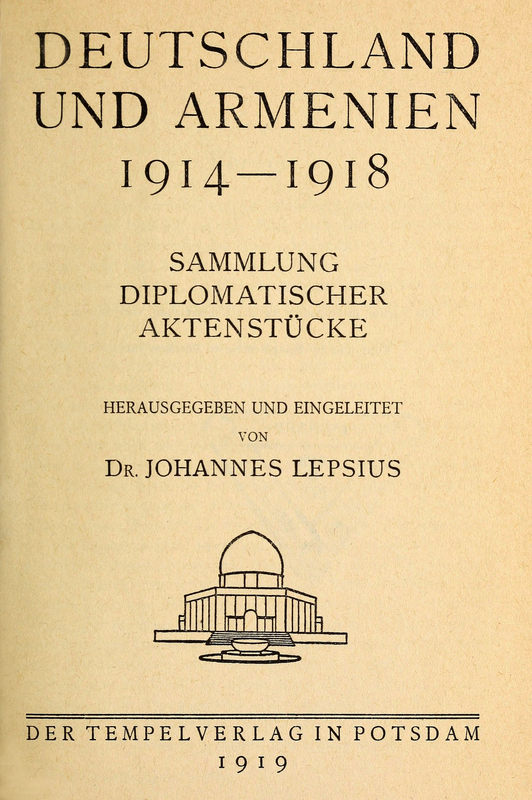 Als ich Ende November vorigen Jahres nach zweieinhalbjährigem Aufenthalt in Holland aus dem Haag nach Berlin zurückkehrte, suchte ich am 1. Dezember den Staatssekretär Herrn Dr. Solf im Auswärtigen Amt auf. Ich bat ihn, mir Einblick zu geben in die Akten des Auswärtigen Amtes, die über die Armenische Frage und ihre Behandlung seitens der deutschen Regierung während der Kriegsjahre Aufschluß geben.