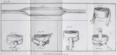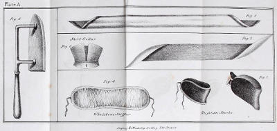 These Stocks were made of black horse-hair, tolerably hard, moderately wide, and were only injurious when fastened too tightly. In many regiments, the officers wishing the men to appear healthy, obliged them to tighten the Stock so as almost to produce suffocation, instead of allowing them more nourishing food, or of treating them[19] with more kindness; or, in short, of giving them an opportunity of acquiring that health, the appearance only of which was produced by the tightened stock.