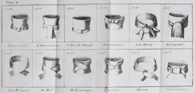 The work is divided into easy lessons—the first gives a solution of the celebrated problem known as the Nœud Gordien, and is the key to all the others. The fifteenth lesson alone contains eighteen different methods of tying the Cravat: but lest any of our readers may be terrified at the idea of having so much to acquire at once, it may be necessary to observe that as they are derivations from the fourteen first described, they are necessarily short and easy of attainment.