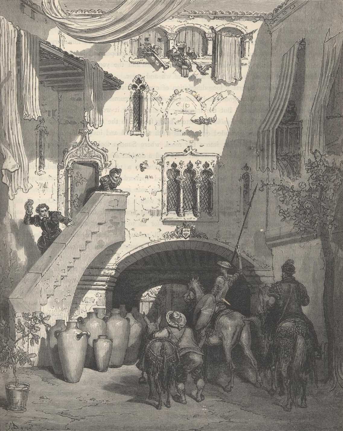 The book cover and spine above and the images which follow were not part of the original Ormsby translation—they are taken from the 1880 edition of J. W. Clark, illustrated by Gustave Dore. Clark in his edition states that, "The English text of 'Don Quixote' adopted in this edition is that of Jarvis, with occasional corrections from Motteaux." See in the introduction below John Ormsby's critique of both the Jarvis and Motteaux translations. It has been elected in the present Project Gutenberg edition to attach the famous engravings of Gustave Dore to the Ormsby translation instead of the Jarvis/Motteaux. The detail of many of the Dore engravings can be fully appreciated only by utilizing the "Enlarge" button to expand them to their original dimensions. Ormsby in his Preface has criticized the fanciful nature of Dore's illustrations; others feel these woodcuts and steel engravings well match Quixote's dreams.            D.W.