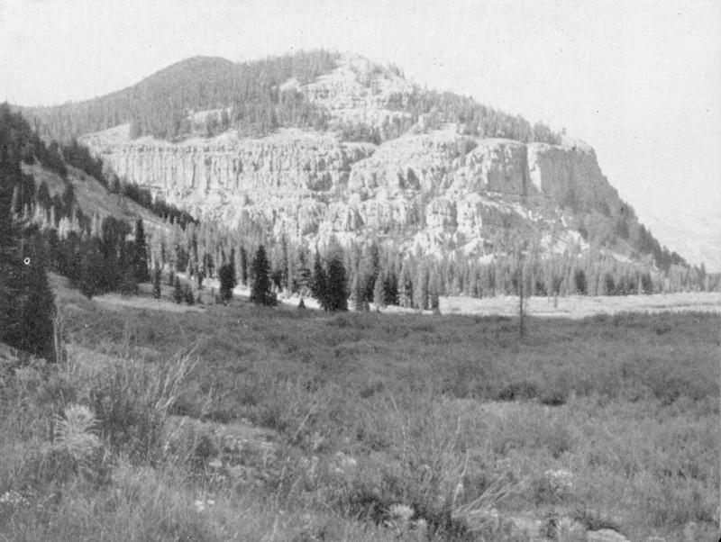 The Old Stockade.—In August of 1891, a cowboy discovered a log stockade on Beartooth Plateau, on the divide between Little Rock and Bennett Creeks, about 3 miles north of Deep Lake. The stockade, resembling a corral about 50 feet in diameter, had been made of huge logs laid up similarly to those in a log house. Here and there along the walls loopholes had been cut, obviously to permit shooting through them. The stockade was old when found. Who it was built by and why is not known. The logs had been cut with a sort of an ax or a hatchet, yet only a portion of the work appeared to be that of white men. Some of the chopping appeared to have been done by a man familiar with the use of an ax, while other logs were literally “gnawed off.” The old stockade is still standing. It can be reached only afoot or with horses.