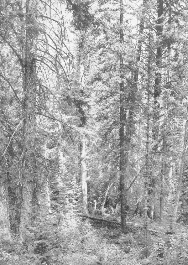 Timber Resources.—The actual forested areas within the Shoshone extend in altitudinal range from about 6,000 to 10,000 feet above sea level. Below the lower limits of the typical forest areas is a scattering tree growth of aspen and cottonwoods, restricted principally to the stream courses.