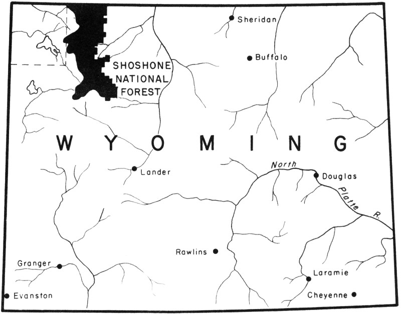 A map of the Shoshone National Forest, with details including roads and points of interest, will be found on the inside of the back cover.