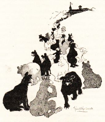 John Kinzie walked rapidly to the head of a sand knoll which gave him a wide view of the scene. Groups of dark figures were scattered over the shining beach as if they were statues of copper, or they waded in the ripples of the beautiful blue lake, throwing water at one another with loud laughter. One could scarcely have fancied that close to the edge of this sportive mood the spirit of murder hid in ambush with cocked rifle and sharp hatchet. A mile away lay the Indian camp, which had grown five times bigger within as many days, like an assemblage of huge ant-hills, with the ants thickly swarming about. But it must be time for Harold White to return, and he passed to the rear of the palisades, where the men, rolling the casks through the underground sally-port, were emptying the powder and whiskey into the river. Just across the stream opposite the fort, set in the midst of green trees and fields, were his home and warehouses. He had sent his young clerk, a lad of fifteen, with a message to Mrs. Kinzie, for he had preferred to have his family stay in their own house till the last moment.