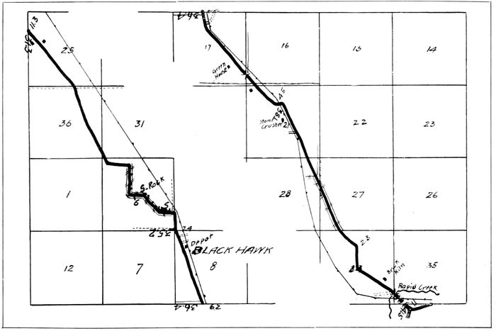 At the point of entrance to the Black Hills from the east, Rapid City has become a leading industrial and railway center. Good hotel and garage accommodations make this a pleasant stopping place in the foothills. The trip westward into the Hills along Rapid Creek to Pactola by auto, or by rail to Mystic, should not be overlooked by any tourist in this territory.