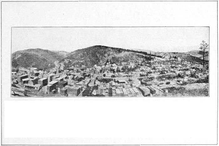 DEADWOOD—The Commercial and mining center of the wonderfully rich and beautiful Climate—Scenery—No Mosquitos—Hospitality—Good Roads—Trout Fishing.