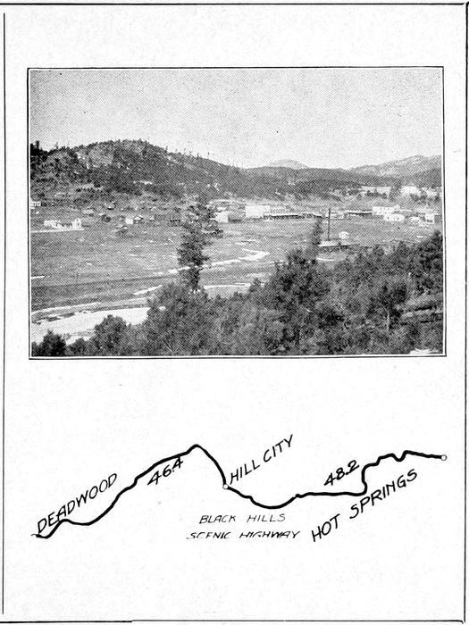 4Perhaps the best known city in the Northern Hills is Deadwood, the center of the industrial and mining interests of this section. Most excellent hotel and garage accommodations, its convenience to surrounding points of scenic interest, and a general spirit of genuine western hospitality toward all will continue to make it a most popular tourist center. Although high in the Hills it is connected with the plains outside by a good road of easy gradient.