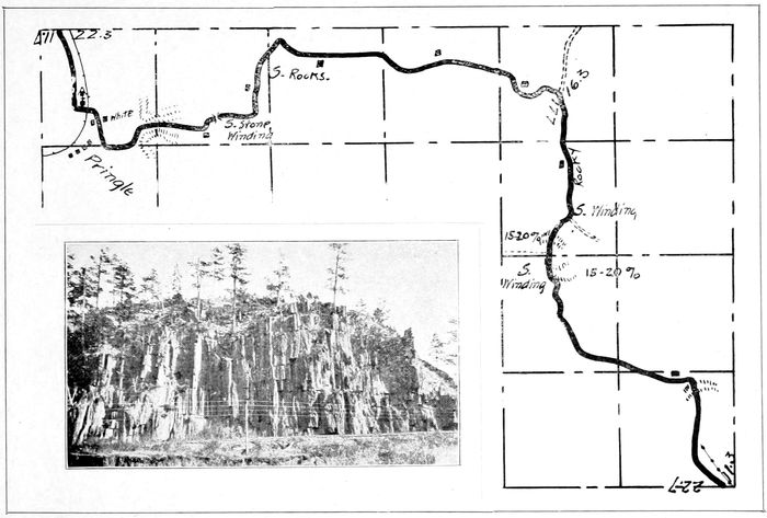 8East of the Black Hills, and within easy reach, is scenery, somewhat mountainous in nature, yet very different from anything in the Black Hills or in other mountainous regions. To anyone who has not travelled the “Scenic Highway through South Dakota,” a two days trip eastward from Rapid City over this road is well worth while.