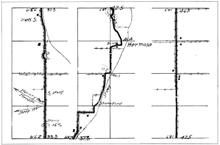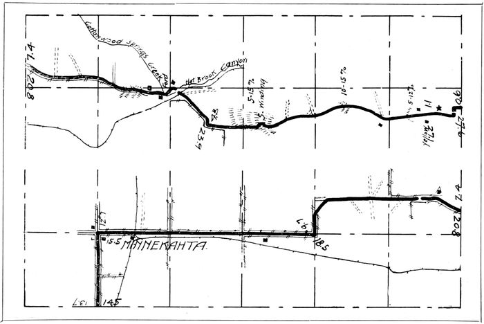 The Homestake Pumping Plant at Hanna, 6 miles from Lead, and the Hydro-electric plant at Spearfish, 15 miles from Lead, furnish the water and power used in the Homestake properties. The Hydro-electric Plant is the largest of its kind in the Hills. The water is carried in a tunnel 5 miles long from the river in Spearfish Canyon, at a point 8 miles from Spearfish, to the reservoir on top of the ridge overlooking and directly south of the city. The three surge towers, on the pipe lines leading from the reservoir down the 700 foot drop to the power plant, may be seen for many miles.