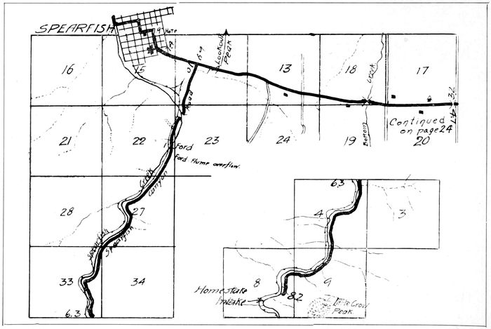 6There is probably no other scenic place in the Black Hills which has been given as much attention by tourists, photographers, and magazine writers as Spearfish Canyon. The Royal Gorge in Colorado, the Palisades of the Hudson and many other points of national scenic wonder may be found reproduced here on a scale perhaps less grand, but making up in beauty all that is lost in magnitude. Good automobile roads traverse long stretches of this canyon, entering it from Deadwood, and from Spearfish as platted herein. It is anticipated that in a few years the road will be made suitable for auto traffic the entire length of the canyon.