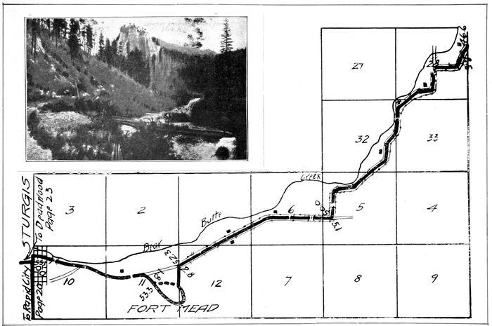 Pictures and more detailed description of this region, also a complete guide of the road from Rapid City eastward will be found in our “_Map and Guide of the Scenic Highway through South Dakota_.”