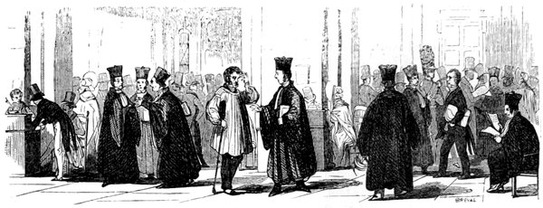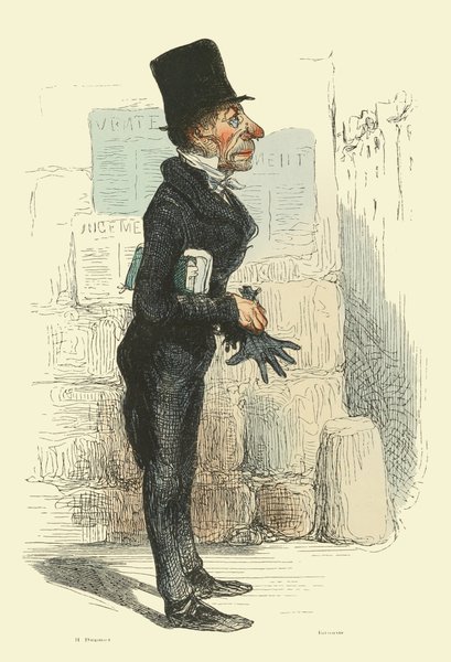 Cet important se montrait fort recherché dans son extérieur; on ne lui voyait jamais que des habits du plus beau drap de Louviers; un jabot, aussi blanc et aussi bien plissé que ses longues manchettes, sortait de sa veste entr’ouverte et laissait voir une chemise de toile de Hollande. En parlant, il jouait négligemment avec les breloques sonores de sa montre à répétition. La tête haute, l’abord froid et impérieux, la parole brève, il devenait poli, IV insinuant, mielleux avec les clients qu’il voulait acquérir ou tromper; mais, du moment où il craignait de se voir déçu dans ce calcul d’avidité, il éclatait avec violence, et ses procédés achevaient de révéler un caractère affreux. On s’instruisait chez lui parce que son étude avait la vogue et une fort belle clientèle; mais ses clercs le méprisaient au fond du cœur. A la même époque, j’ai rencontré, dans la même profession, un autre type original, digne du pinceau de Regnier ou de Molière. Ce noir suppôt de Thémis avait choisi son repaire dans une assez vilaine rue; sa maison délabrée était de la plus chétive apparence, et n’avait qu’une porte bâtarde. Quand vous l’aviez franchie, un corridor assez obscur vous conduisait à une étude enfumée, dont les clercs assez âgés ressemblaient à des recors. En entrant dans un cabinet encore plus obscur que l’étude, je n’aperçus pas sans quelque émoi un spectre d’une stature colossale et d’une vieillesse ferme et vigoureuse. Il avait un bonnet de laine rouge dressé sur sa tête; une redingote d’un gros drap gris, salie par le tabac, le couvrait tout entier. Des mains fortes, mais sèches et osseuses, garnies d’ongles noirs, longs et recourbés comme des serres d’oiseau de proie, sortaient de ses manches avec une partie de l’avant-bras. Ses yeux, enfoncés dans leurs orbites, jetaient un feu sombre sous d’épais sourcils, dont quelques poils hérissés se relevaient vers un front plissé de rides. Du fond de sa vaste poitrine sortait une voix forte et menaçante qui devenait aiguë et criarde dans les fréquents accès d’une colère prompte à s’allumer. Cet individu, rongé d’avarice, dévoré d’amour de l’argent, plein de fourberie, semblait être le monstre de la chicane personnifiée. A son aspect, je tremblais sur le seuil de son cabinet, je tremblais en l’approchant, et à peine si je parvins à balbutier quelques mots de l’affaire pour laquelle on m’avait envoyé vers lui. Mon procureur, au contraire, était un beau fils, il avait des prétentions à passer pour un homme du monde; à mon retour, je me trouvais en verve, et je l’amusai beaucoup en lui improvisant le portrait de son odieux confrère. Au reste, il ne faudrait pas juger la compagnie sur ces deux modèles: en effet, quoique un peu décriée, elle renfermait un assez grand nombre d’honnêtes gens; et tel procureur de l’époque était un véritable juge de paix avant que la loi eût institué ces magistrats de la conciliation. Quant aux notaires, leur compagnie jouissait encore de l’estime et de la confiance générales, malgré quelques échecs causés par la manie des affaires, qui commençait à s’introduire dans leur cabinet. Les jeunes gens qui aspiraient au notariat contractaient de bonne heure des habitudes d’ordre, de régularité, de probité sévère; mais on s’apercevait V déjà qu’il manquait beaucoup de choses à leur instruction, comme à celle de leurs patrons; elle ne suffisait plus aux besoins de la société et à la variété des transactions. Il y avait une ligne de démarcation entre les clercs de notaire et les clercs de procureur, et on les distinguait sans peine au premier coup d’œil, quoiqu’ils suivissent également la mode à laquelle ils n’étaient pas moins soumis que les femmes.