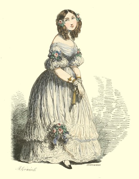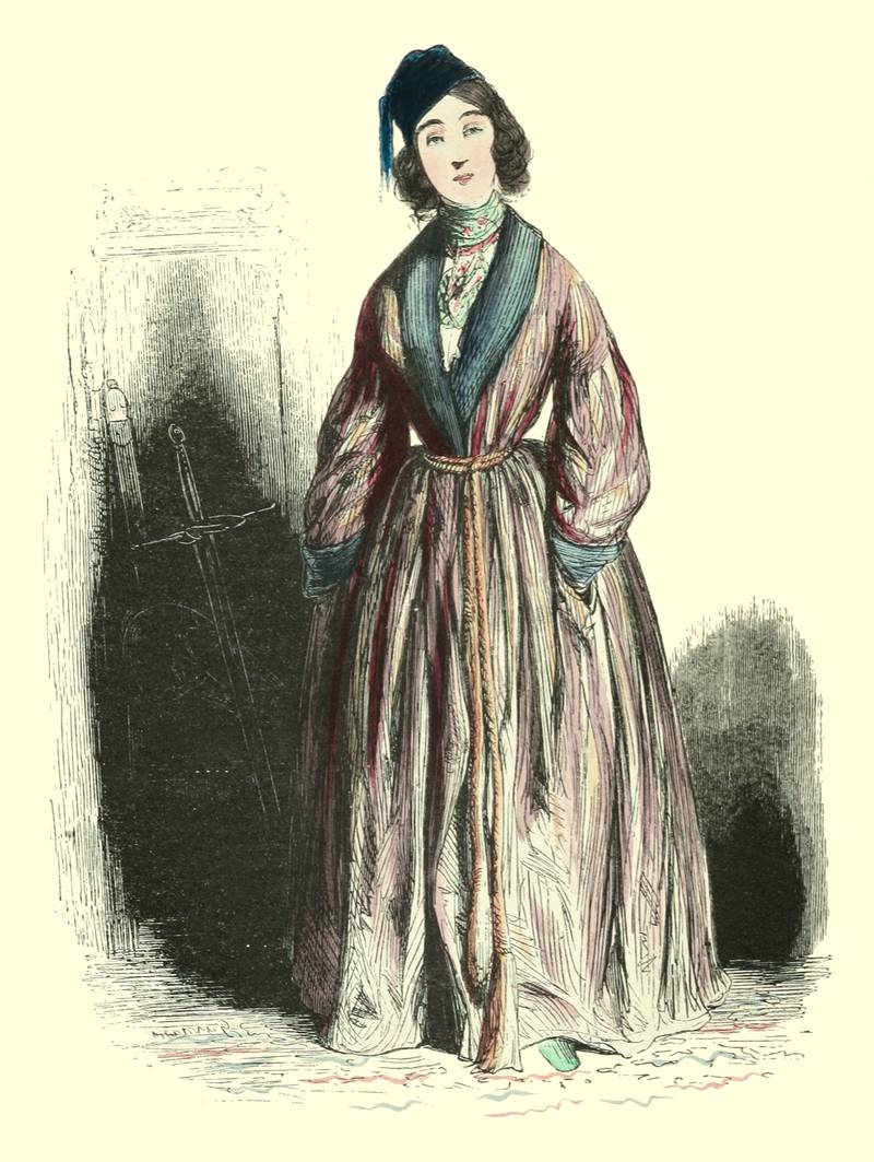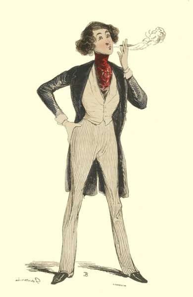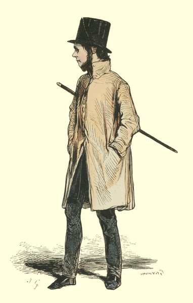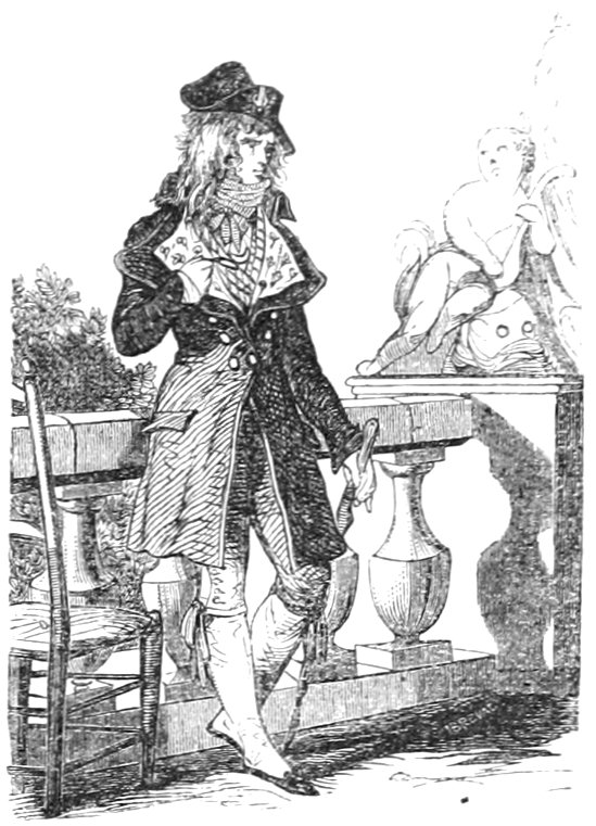 Pour qu’un jeune homme fût à la mode, il lui fallait un habit de drap fin ou de soie, suivant la saison, qui serrât exactement la taille et les bras, car on avait la prétention de paraître mince; l’embonpoint sentait la roture, et le ventre était à l’index, comme chose prohibée. L’élégant petit-maître sortait encore un gilet d’une étoffe chinée ou d’un drap chamois, des culottes de sénardine couleur jaune pâle ou gris de lin, des bas de soie à raies longitudinales et variées, des souliers étroits et lustrés à la cire luisante, des boucles d’argent taillées à facettes comme le diamant. L’été, on lui voyait un léger bambou à la main; l’hiver, il jetait sous son bras gauche un énorme manchon à longs poils soyeux, dans lequel il se serait bien gardé de cacher ses mains quand il se promenait aux Tuileries ou au Palais-Royal. N’oublions pas le chapeau de castor, qui, pendant un ou deux ans, fut d’une hauteur démesurée. Paris l’avait emprunté aux Hollandais. Je pourrais bien retracer ici ce qu’on appelait le négligé pour une certaine classe de jeunes fashionables du haut parage, auxquels on pouvait appliquer ce trait de Gilbert: