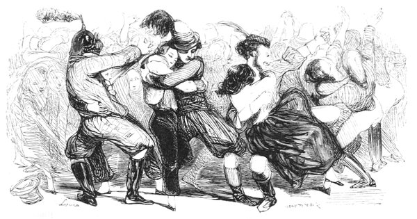 «Que vois-je! s’écriait une élégante qui montait paisiblement sans songer au spectacle inconvenant qui l’attendait au passage.