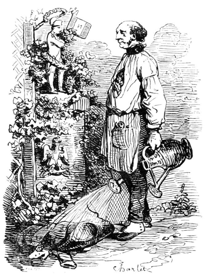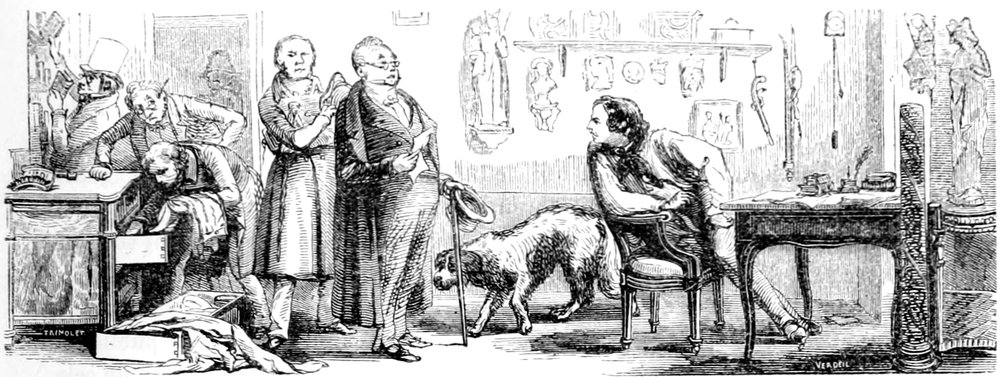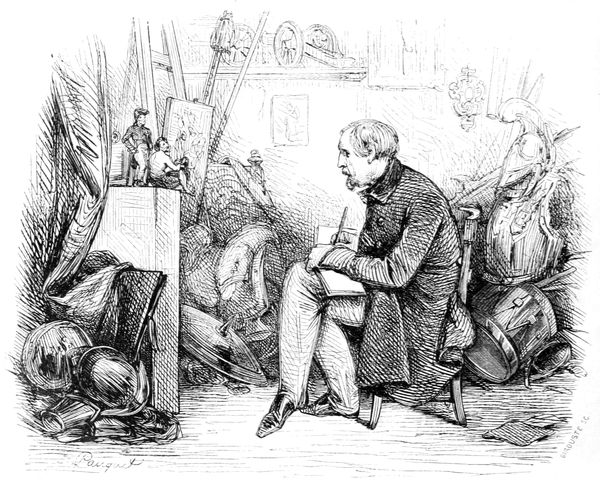 C’est surtout avec les élèves en loges, qui concourent pour le grand prix de Rome, que le modèle tranche du professeur. Telle est sa pénétration, qu’il signale dans un dessin non-seulement les imperfections qu’on peut y trouver, mais encore celles qui n’y sont pas. Il prévient l’erreur par un avis officieux: la tête est mal emmanchée; les bras sont trop longs; le torse est écrasé; les muscles ne s’attachent pas bien. Il est plus classique qu’un vieillard de l’Institut, plus rigoureux qu’un membre du jury d’admission, plus exigeant qu’un bourgeois qui, faisant faire son portrait, trouve les ombres trop fortes, et affirme qu’il n’a jamais eu autant de noir sur la figure.
