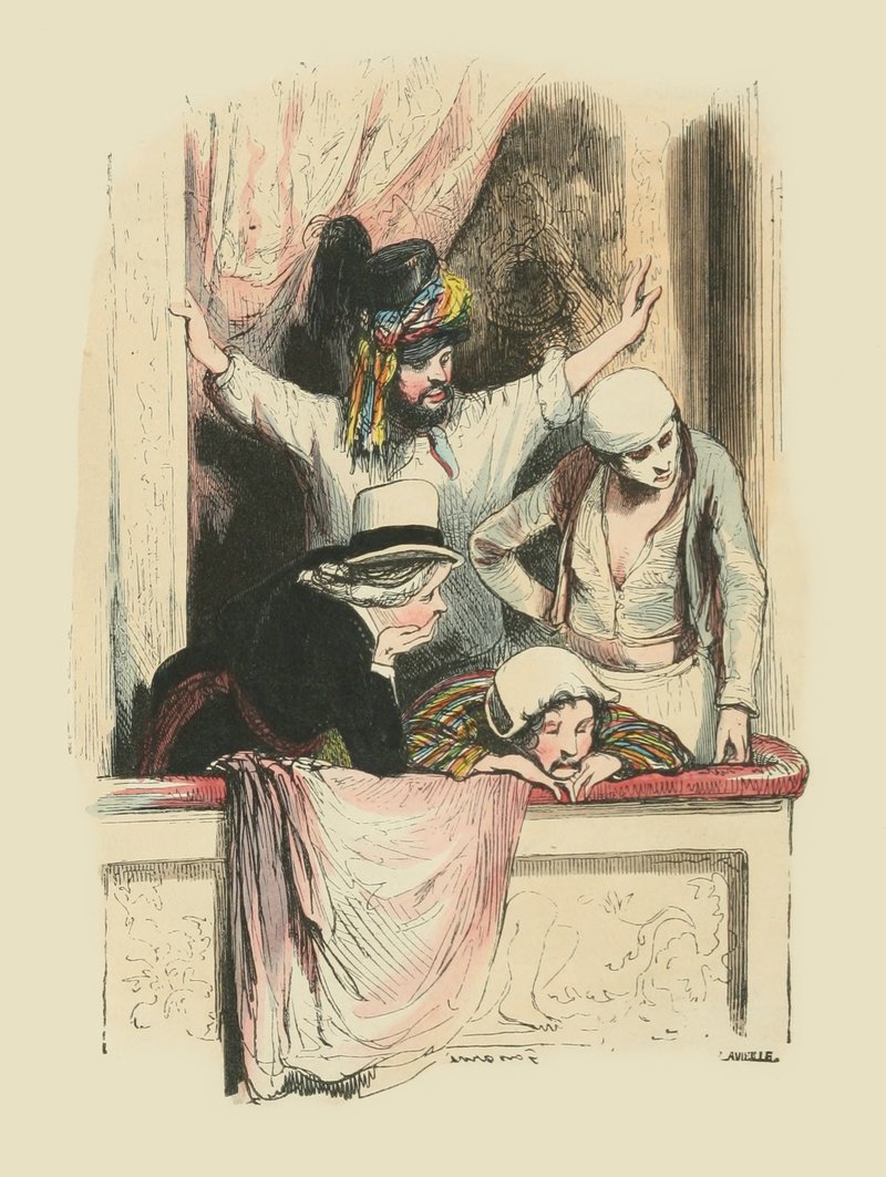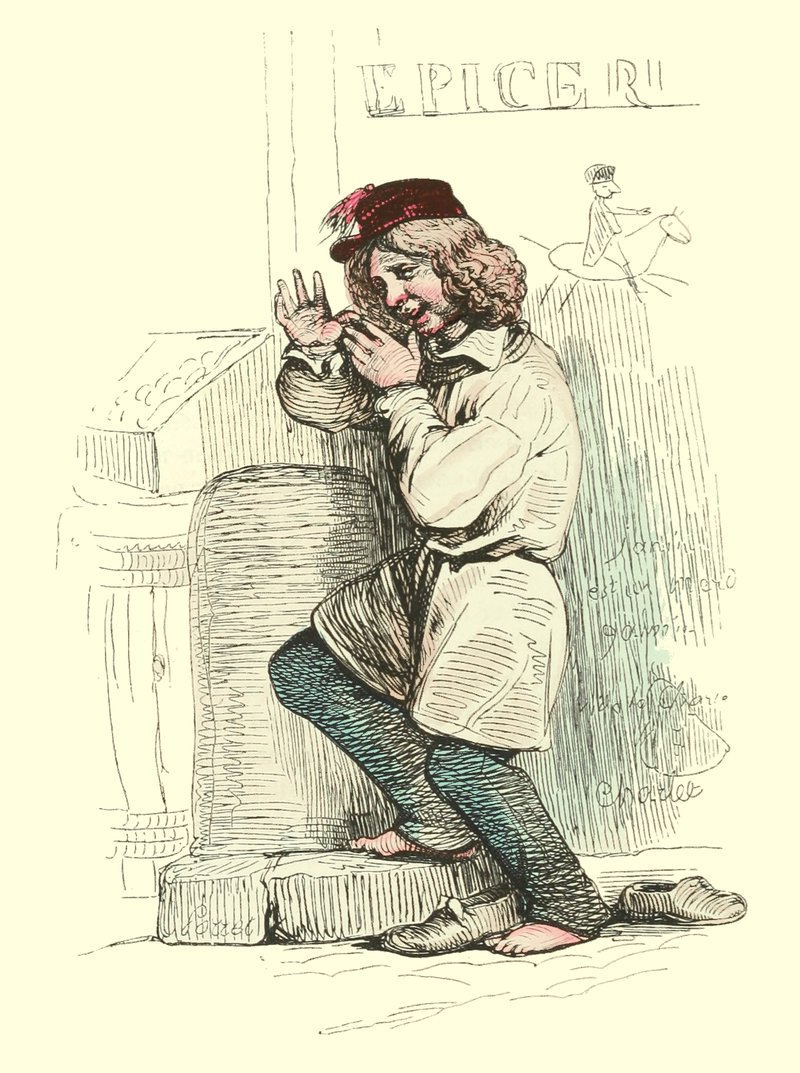 Les jeunes modèles chantent, jouent la comédie bourgeoise, se disent entretenus par des femmes de députés, et sont toujours sur le point d’être reçus à l’Opéra-Comique. Les modèles à barbe font des commissions et cirent les bottes; ce sont souvent d’anciens militaires, qui racontent la bataille de Champaubert, et crient: «Vive l’empereur!» quand ils ont bu.