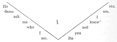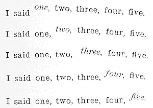 Time, then, refers to the rate of vocal movement. It may be fast, or moderate, or slow, according to the amount of what may be called the collateral thinking accompanying the reading of any given passage. To put it another way: a phrase is read slowly because it means much; because the thought is large, sublime, deep. The collateral thinking may be revealed by an expansive paraphrase. For instance, in the lines