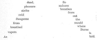 The succeeding passages will have a prevailingly slow movement. Measure the thought carefully, and think the expansive paraphrase. These drills are not to train us to read slowly (for any one can do that), but to think largely. The movement will take care of itself. It is further urged that the student give considerable attention to this part of the subject; for the time so spent will be valuable not only[21] as it results in expressive movement, but because it is only through meditation that the fullest insight into the meaning of a passage can be acquired. Hence, dwelling for a long period upon a phrase or sentence gives opportunity for the enkindling of the imagination and emotion. It has been frequently found that where a student’s movement was out of harmony with the sentiment of the passage, his emotional interpretation was equally poor. A farther careful study of the text to improve the movement has generally resulted in the improvement of the emotional expression.