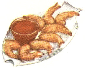 Mix egg, water. Beat in Bisquick, salt. Peel shell from shrimp, leaving last section and tail intact. Cut a slit through center back without severing either end; remove black line. Dry shrimp; dip in batter; fry in deep hot fat (375°) 1½ to 2 min., until golden brown. Drain shrimp on absorbent paper. Serve with tartar sauce or cocktail sauce.
