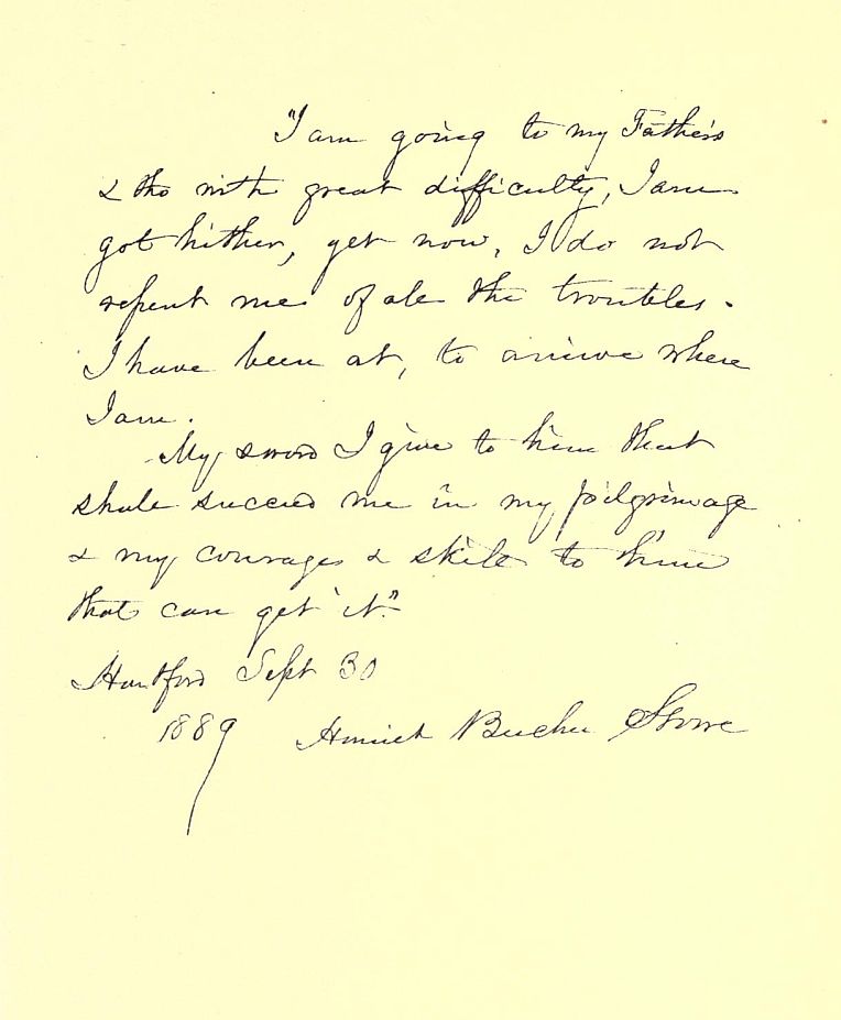 Charlie told me that he has got all written up to my twelfth or thirteenth year, when I came to be under sister Catherine's care in Hartford. I am writing daily my remembrances from that time. You were then, I think, teacher of the Grammar School in Hartford. . . .