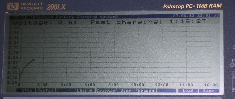 version) [Manufacturer's site] This program allows to display battery voltage in screen corner (it works as battery charge indicator) and controls charging process by displaying voltage graph. It works with cells up to 1600mAh, so to charge for example 2000mAh (about 19 hours with LX fast charging) battery, you have to charge for 16 hours and then for 3. Remember to add ABCTSR.COM to Autoexec.bat before System Manager. |